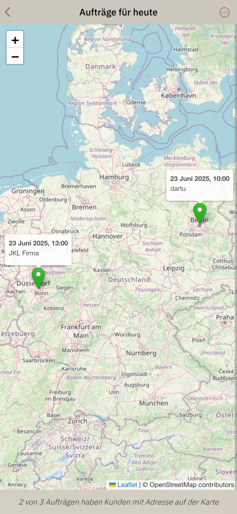- Überprüfen Sie den Standort der Aufträge auf der Karte,