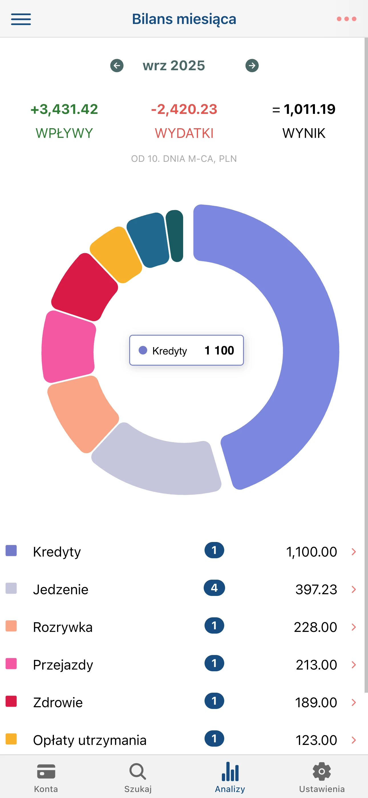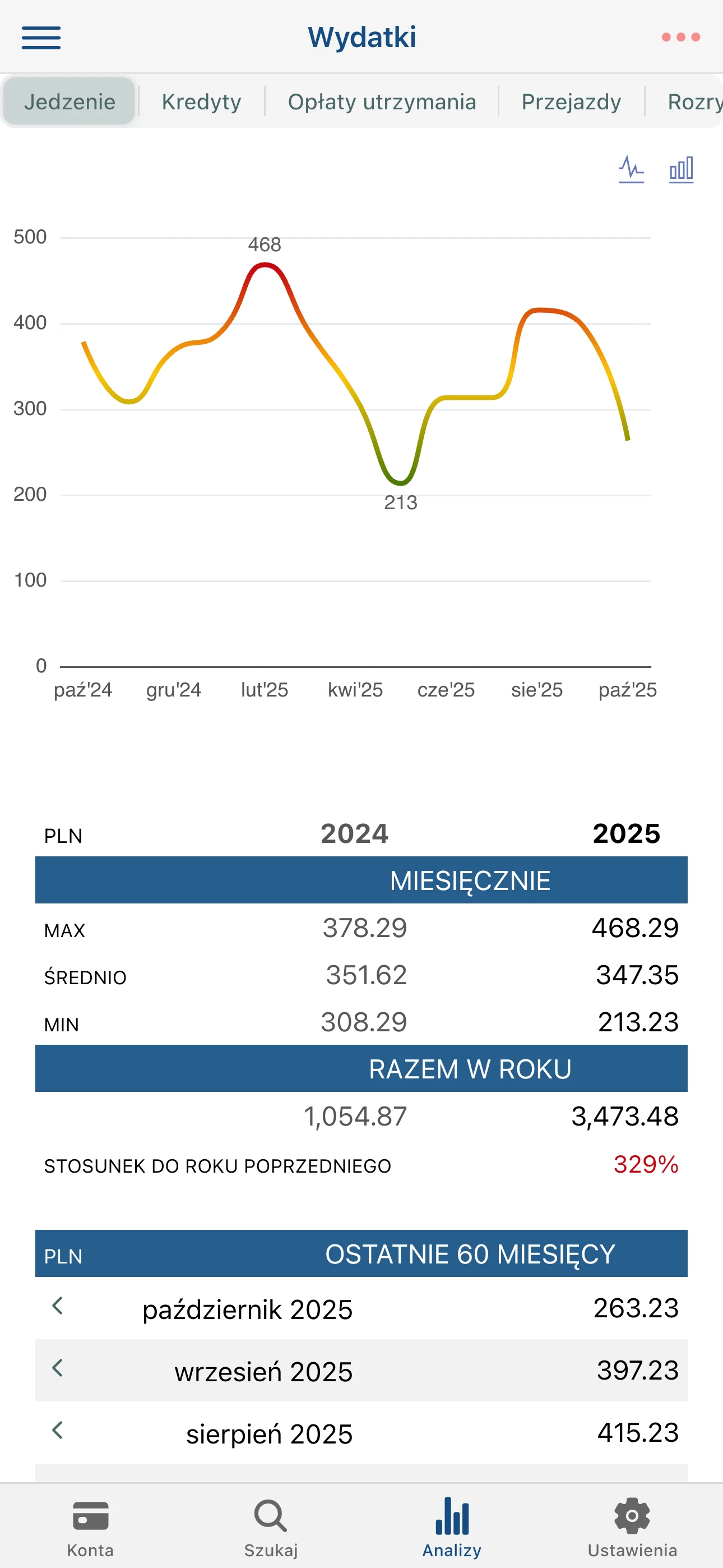 - analizować strukturę wydatków w poszczególnych miesiącach,
