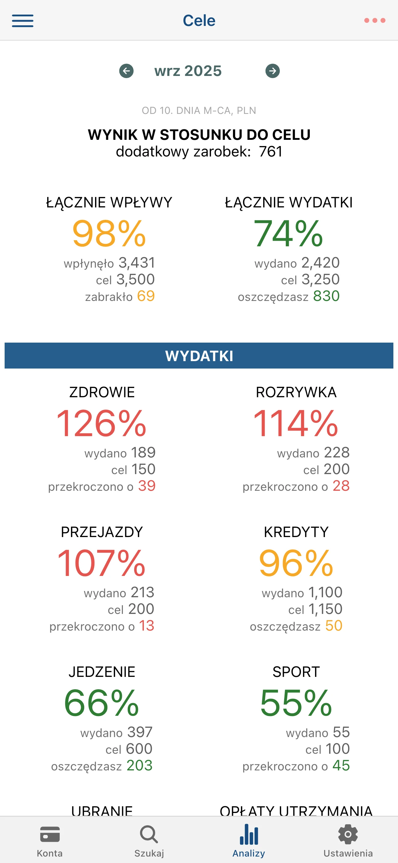- tworzyć cele maksymalnego poziomu wydatków w miesiącu,