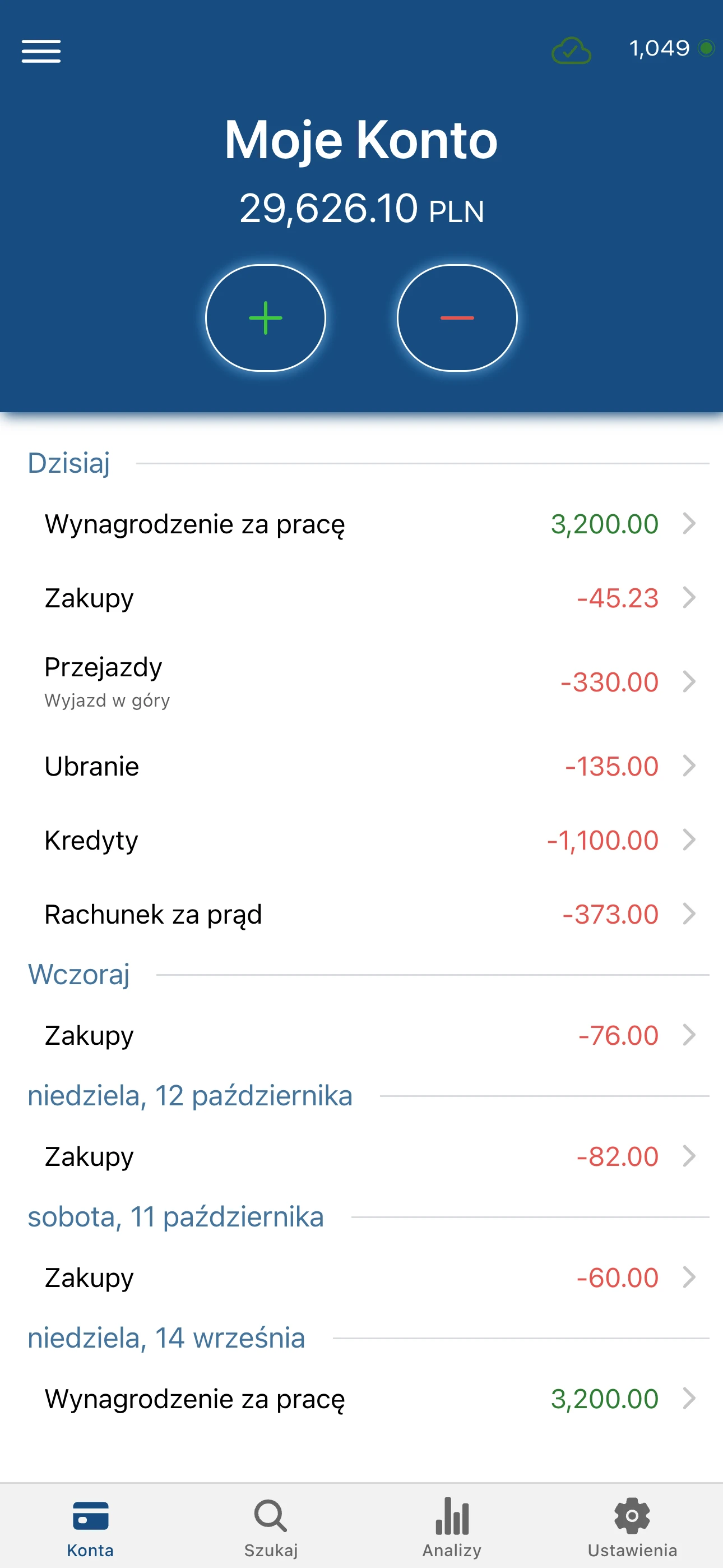 - tworzyć przypomnienia o wydatkach, w tym cyklicznych,