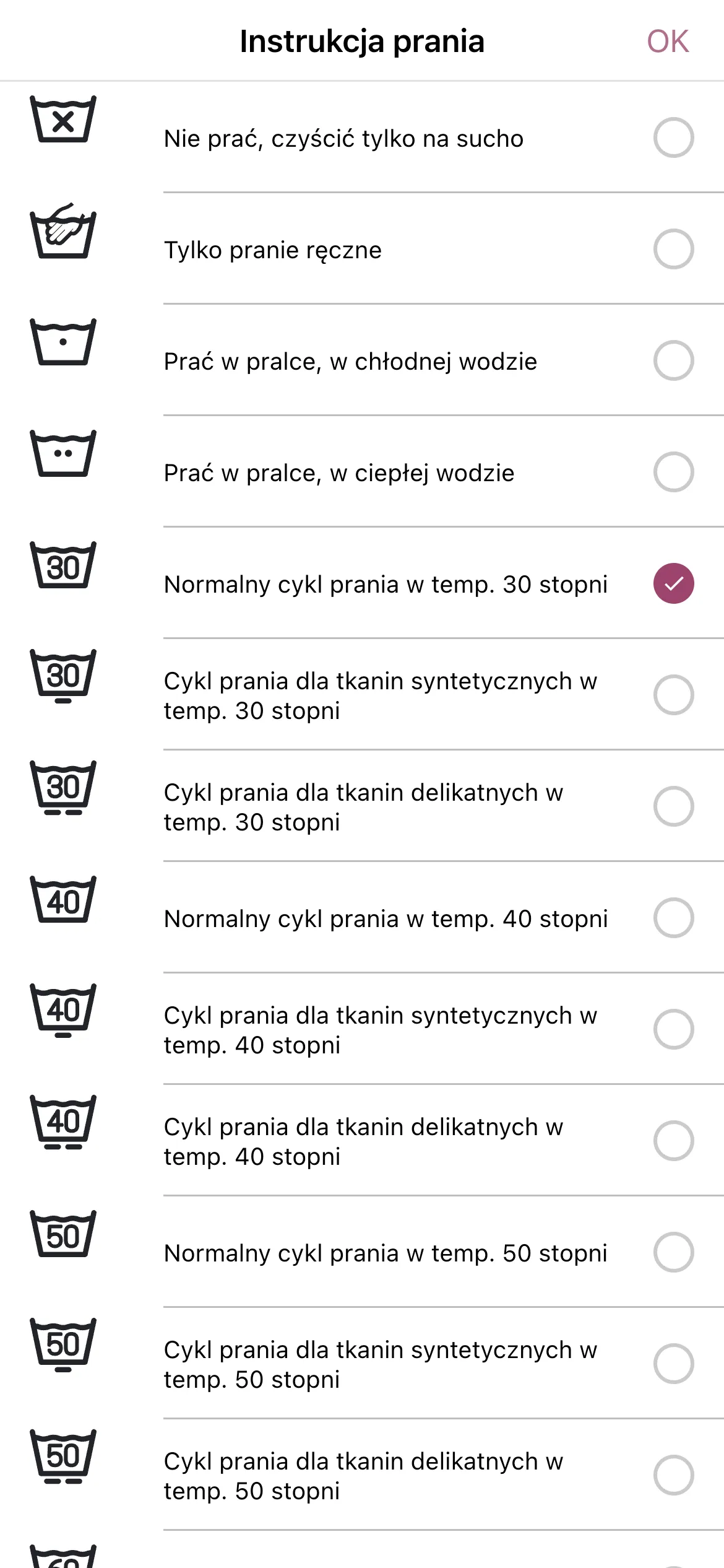 - Zapisywanie instrukcji prania i pielęgnacji odzieży (możesz swobodnie odciąć tę metkę z ubrania),