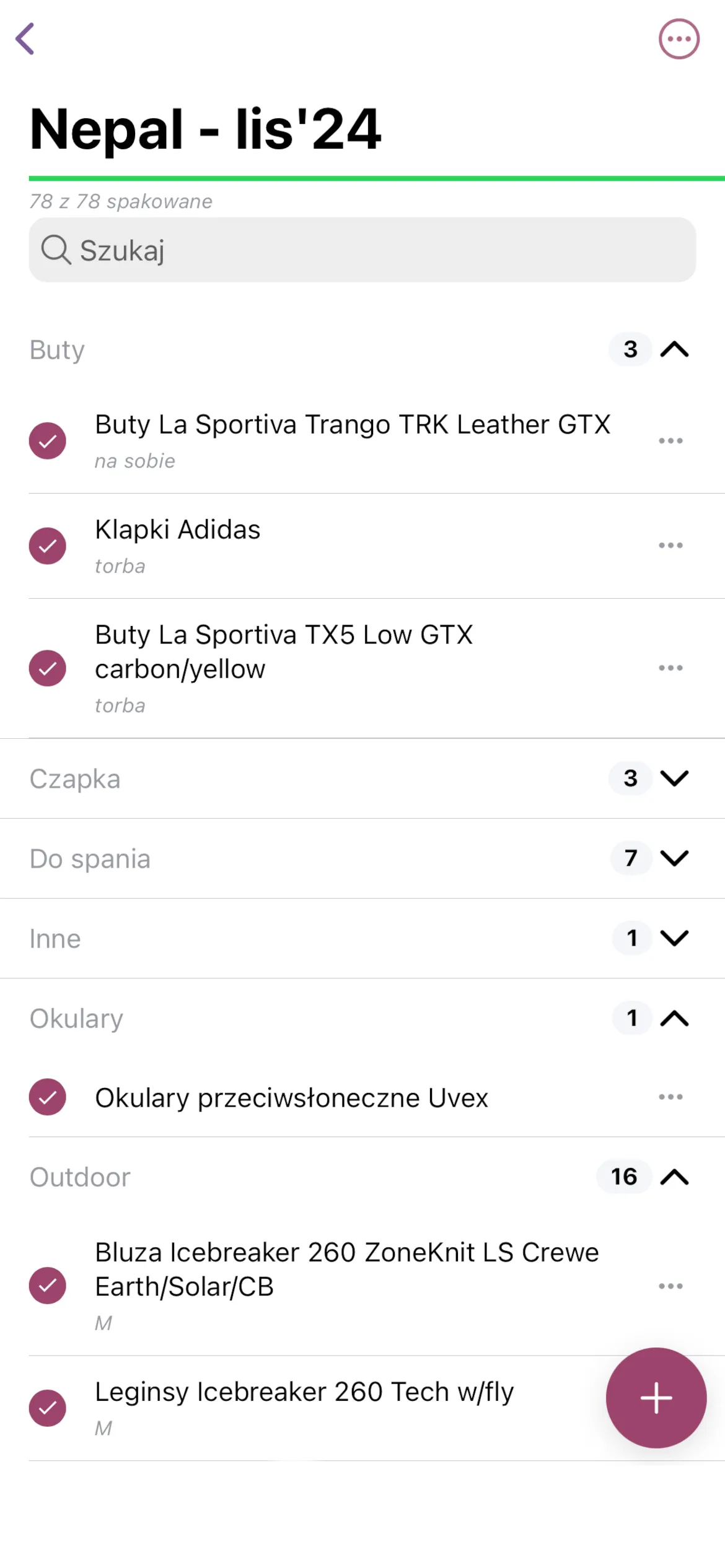 - W trakcie pakowania możesz oznaczać, które rzeczy trafiły już do torby,