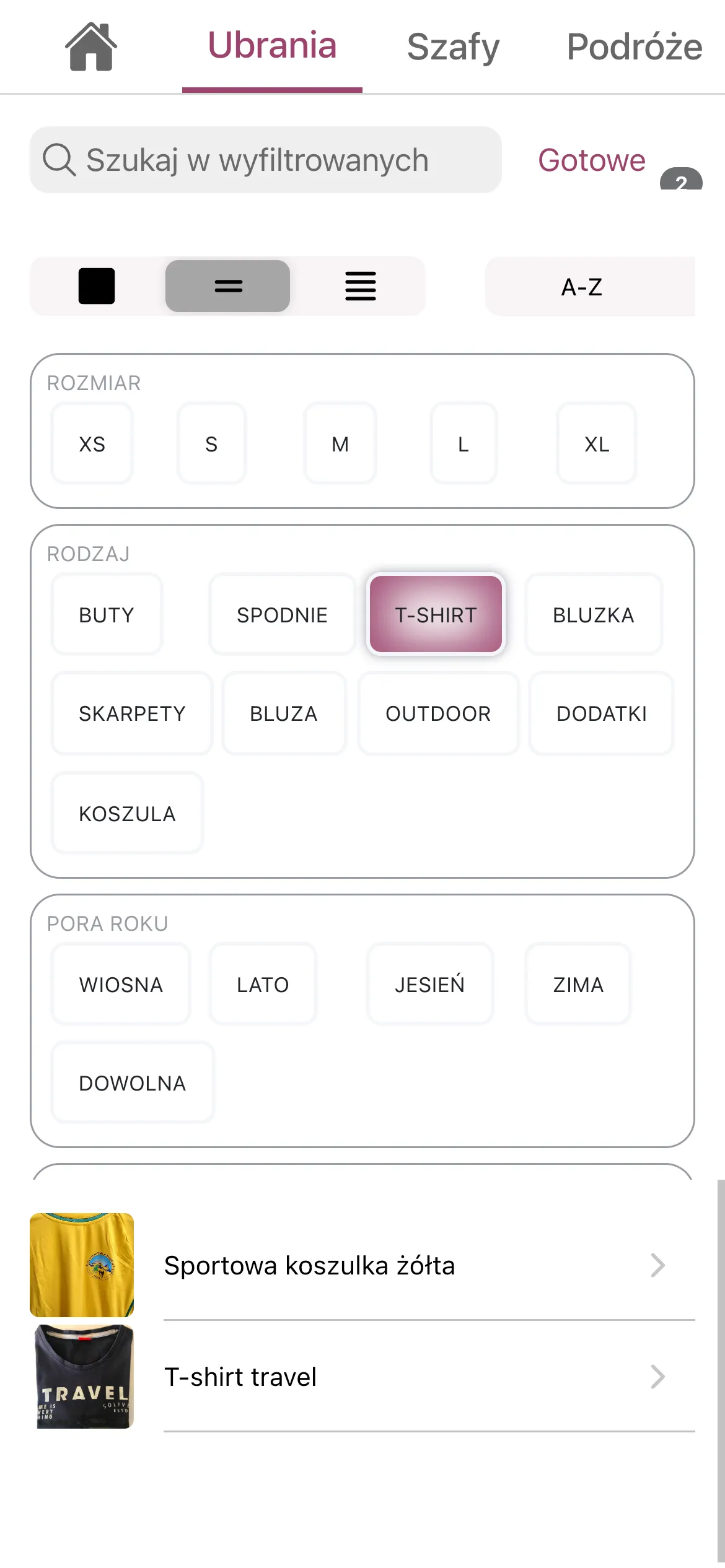 - Definiowanie, którymi cechami opisujesz swoje ubrania wyłączając te niepotrzebne (aplikacja już ich nie wyświetli),