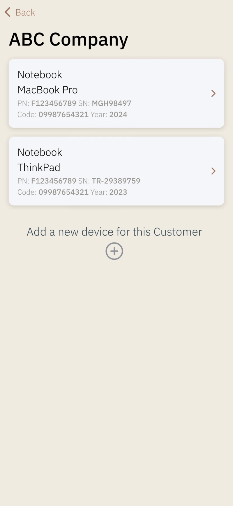 - register customer's devices,