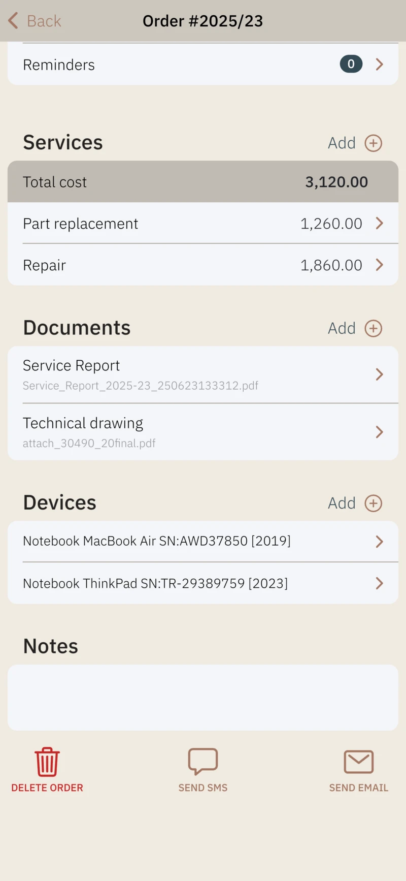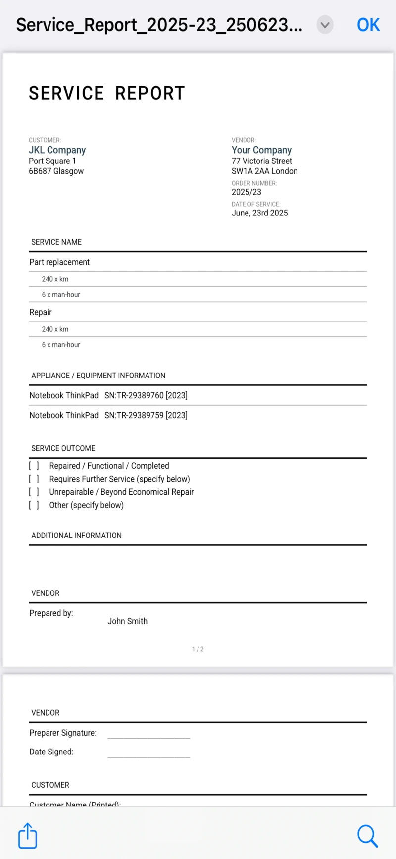 - generate documents from ready-to-use templates - Cost Estimate, Service Report and Invoice,