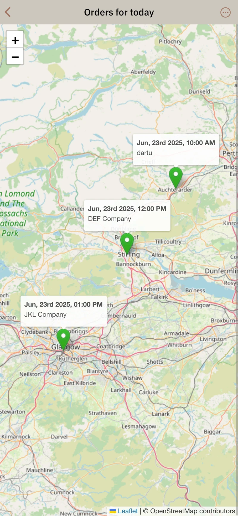 - quickly preview of orders to be performed for today,